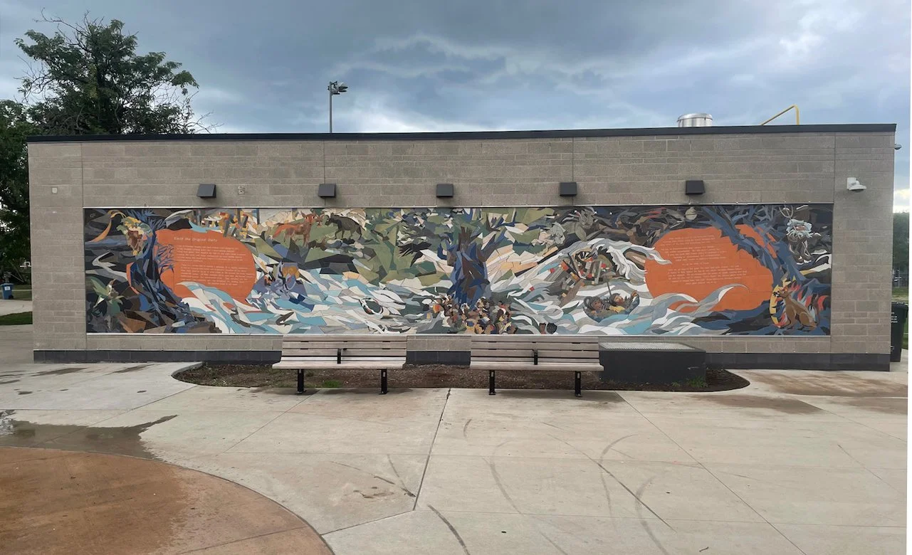 In 2022 I assisted artist Craig David on the work ‘Tableau Congeries’ which depicts nine cultural stories or myths. The cultural illustrations honor various cultural and ethnic groups that have immigrated and made their homes in the Cedar Riverside neighborhood over the past 150 years. The work is made of cut porcelain/stone mosaic on concrete block wall. The finished mosaic is 8’ tall and 47’ wide, located at Currie Park, Minneapolis, MN